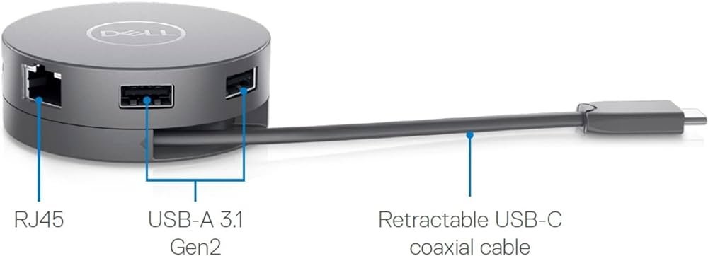 - Unique Features: Retractable Cable, Rotary Design, Fast Role Swap, MAC address pass-through, PXE Boot, Wake-on-LAN (for compatible Dell systems)
