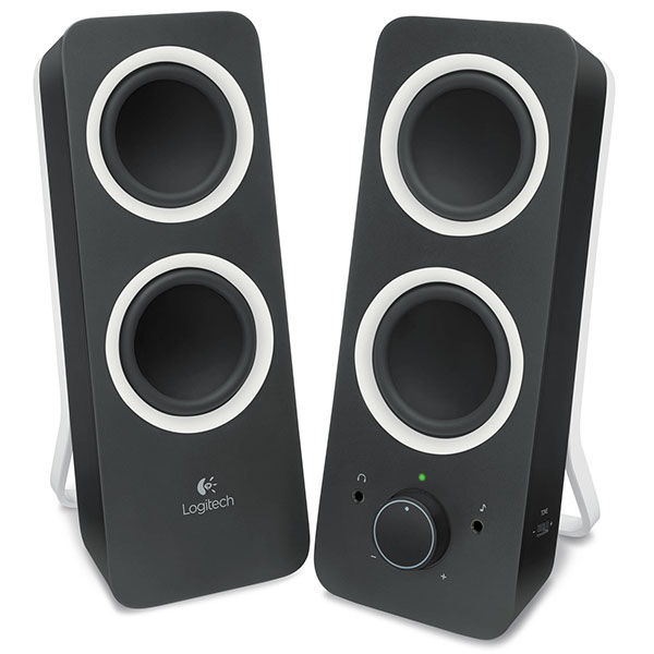 The Z200 speakers offer a total of 10 watts of peak power (5 watts RMS), which is more than enough to fill a room with full-bodied sound. They feature two drivers per speaker, one for a wide sound spectrum and a passive radiator for deeper bass. The system includes a convenient, integrated knob on the front of the right speaker for easy control over volume and bass level.